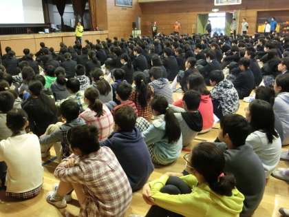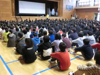 6年生が、中学の朝会「人格の完成」に参加しました。