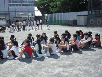 今日は各学年30分ずつの最後の練習です。どの学年も気合が入っています。今日の練習は明日に運動会を控えているので、体育着には着替えないで行いました。
