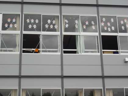 最後の写真は2年生の窓の飾りです。校庭側からも見えるのでぜひご覧ください。