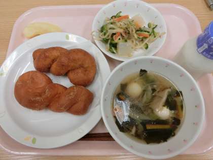 今日は、きなこ味とココア味の二色揚げパンを出しました。