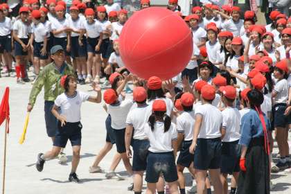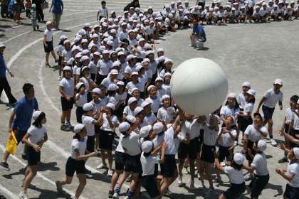 迫力ある大玉送りの様子です。この位置から見るのは私も初めてです。子どもたちも力一杯頑張っていた様子がよくわかります。