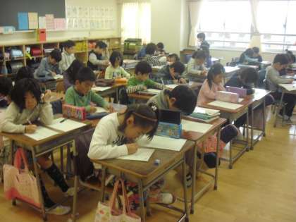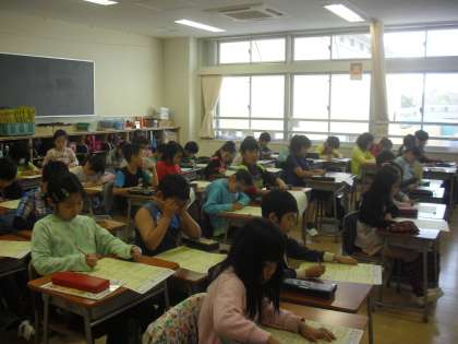 芦花小学校では、学力向上の取組の一つとして火曜日の朝の時間に「算数タイム」と称し、算数の問題に挑戦し、算数の基礎的な計算力、基礎基本事項の補充学習をしています。算数の授業では、集団での学び合いを中心に、問題解決力の育成に取り組みます。