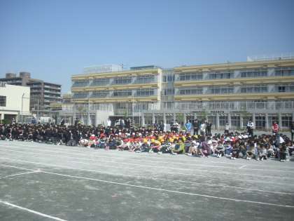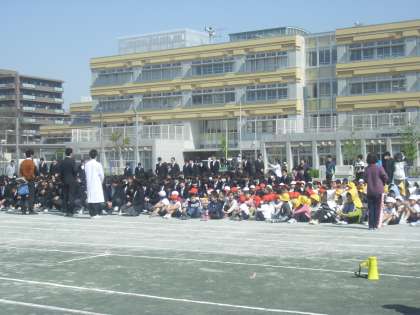 今日は28年度4月の小中合同での避難訓練をして、新しい教室からの避難経路の確認をしました。新1年生も参加しての小中1000人を超える避難でした。さすが中学生は早い!!芦花小の手本となる芦花中学校の生徒の姿を近くで見ながら、小学生もよりよい自分をめざして成長していくことでしょう。