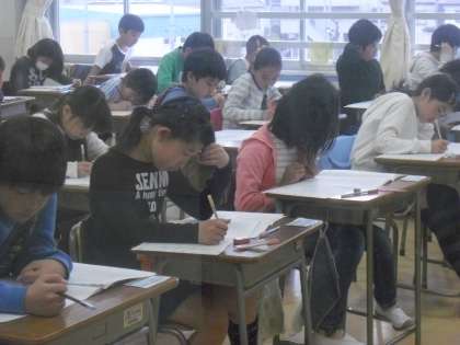 こうした取組をさらに進めていくために、児童の学習の状況を確認する「学習習得確認調査」を実施しています。今日は芦花小の5,6年生が国語、社会、算数、理科の前年度までの学習内容についての調査を1〜4時間目に実施しています。みんな真剣に取り組んでいます。
