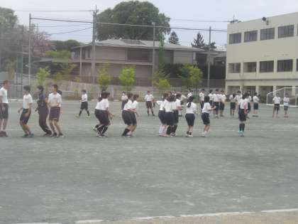 中学生は、体育祭に向けての活動も開始したようで、今日はクラスでの長縄跳びに挑戦していました。