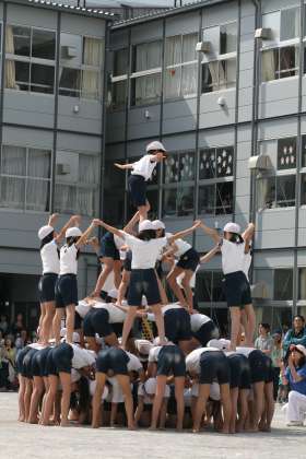 いよいよ組体操フィナーレです。大きなタワーが完成しました。女子のタワーは正面からお見せできないのが残念です。