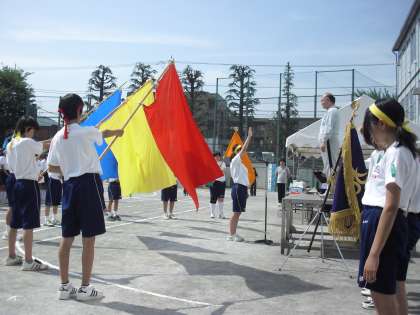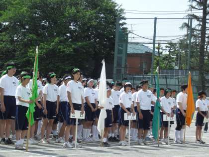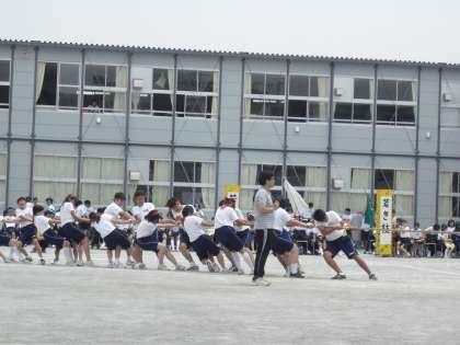 今日は芦花中の体育祭です。仮設校舎の狭い校庭ですが、芦花中も自分の学校の校庭で行います。天気にも恵まれ、生徒たちは力いっぱい競技に取り組んでいます。