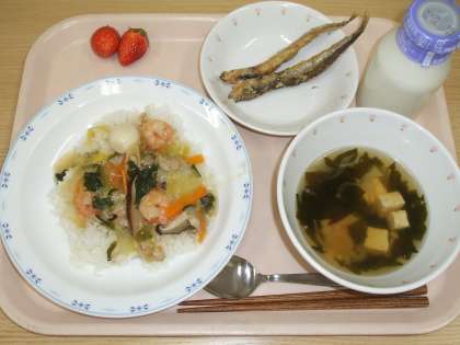 今日の「ししゃものから揚げ」は、衣にカレー粉を入れた、カレー風味のから揚げでした。小魚を苦手としている子も、今日のししゃものから揚げは、おいしそうに食べていました。