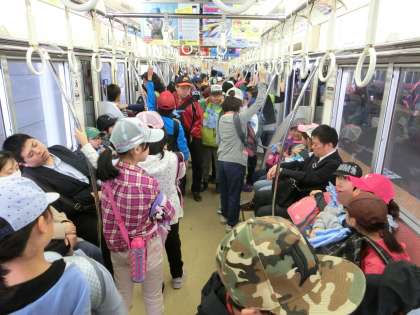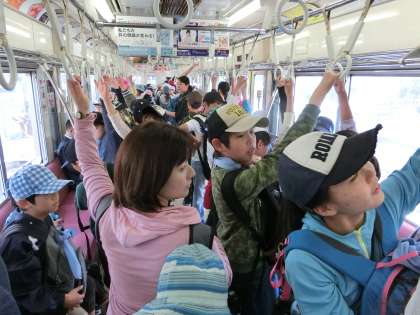 電車に乗って高尾山へ向かいます。公共マナーを守り、周囲の乗客に迷惑を掛けることなく車内で過ごす様子に感心することしきりでした。芦花小の看板を背負っている高学年にふさわしい立派な態度は、本校の誇りの一つでしょう。