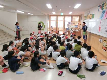 各学級のリレー選手がミーティングを行っていました。この日は、技能指導ではなく、代表としての心得に関する指導が中心でした。とても大切なことですね。走力だけでなく、行動面でもナンバー1の代表者たちであってほしいと期待していますよ。