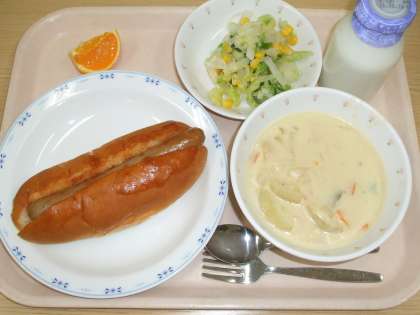 今日の「クリームスープ」は、サラダ油とバターと小麦粉で丁寧に作ったホワイトルウを使い、とってもなめらか、クリーミーなスープに仕上がっていました。