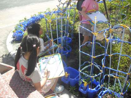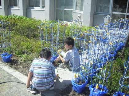 2ン延性が大事に育てているミニトマトの苗がすくすくと育っています。今日はその様子をスケッチ・・・・葉の形などをそれぞれの言葉でも記録に残していました。お世話をしながら大きく育てていきましょうね・・・・