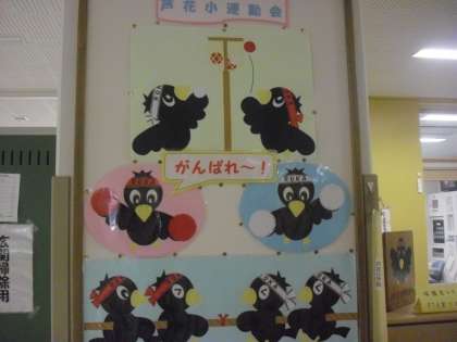 芦花小学校では、「学力、体力、こころ力、ふれあい力を学校、家庭、地域での共育で育む」を学校としての基本方針とし活動しています。保護者の皆さまも積極的に教育活動などをサポートしてくださっています。玄関掲示コーナーには昨年度から毎月の活動などに合わせ、芦花ラスの掲示が登場しています。今月5月は運動会・・・・芦花小サポーター(掲示装飾委員会!?の皆様)、いつもかわいらしい掲示をありがとうございます。子供たちも、教職員も楽しませていただいています。皆様、今後の芦花ラスの動きにもぜひご注目を!!