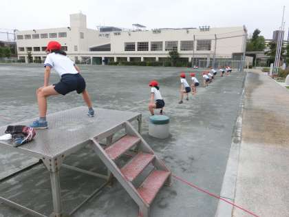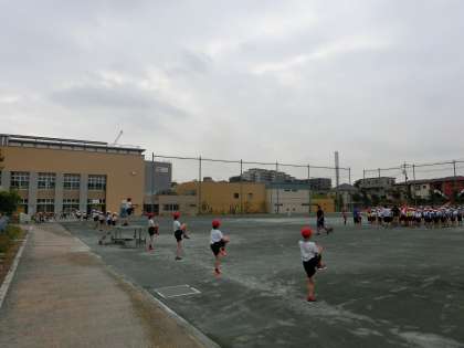 運動会に行う体操の示範を全校児童の前で務める運動委員会の子たちが、その練習に励んでいます。先生ではなく、子どもたちにその役が任されているのは、芦花小児童にはその力があると期待されている証拠ですね。頼もしいですよ!