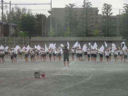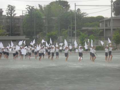 5年生の表現「ラブ・LOVE・愛」の練習が始まりました。5年生はフラッグを使っての表現に取り組みます。動きがきれいにそろう美しさが表れるよう頑張っています。