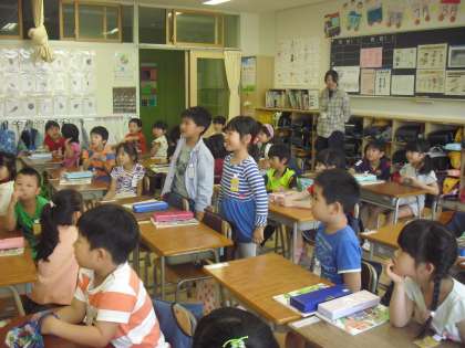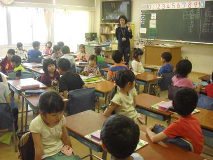 言葉の学習で、文字を一文字変えてのしりとりをしていました。2人組で、どんな言葉があるか考え、発表です。難しい言葉も知っていて、発表ではみんなびっくりしていましたね。