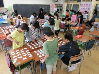 運動会練習に全力投球の毎日ですが、今日の午後だけは小休止。上学年の子どもたちがクラブ活動に臨んでいます。音楽、日本文化、手芸、3つのクラブにお邪魔してみました。合奏、百人一首、自分で課題を決めての作品作り・・・。一人一人が自分の興味・関心にそって、活動を繰り広げていく楽しいひととき、その雰囲気がどの教室にも漂っていましたよ。