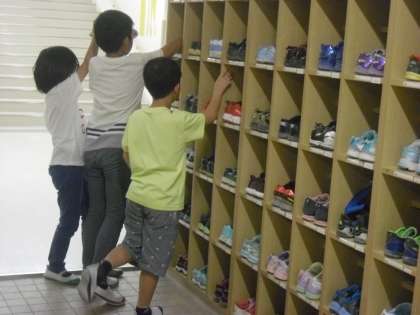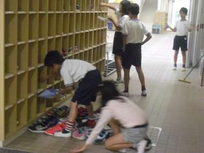 靴箱の掃除担当児童が、一つずつ砂を掃き出し、きれいに靴をそろえていました。掃除が終わった後の靴箱は、きちんと揃っていて、とっても気持ちがいいですね。いつもありがとう!