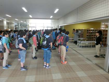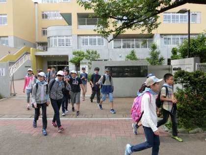 ピロティでの出発式の様子です。お世話になる方々とのご対面、見送りの先生方への挨拶、そして校外へと出発していく3コマをアップしました。