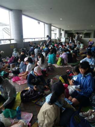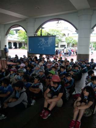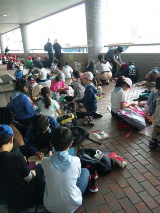 観劇を終え、竹芝桟橋で海を眺めながらお弁当タイムです。朝早くからのお弁当作りありがとうございました。みんなしっかり食べています。