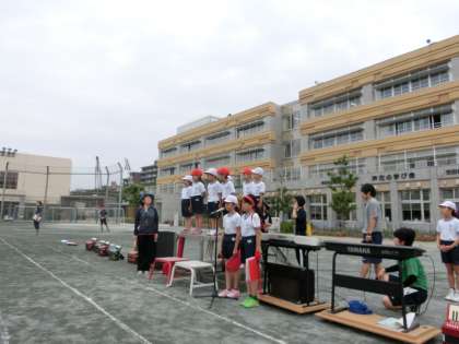 また、途中で可愛い1年生の代表者が朝礼台に登場する場面もありましたが、セリフの披露はなしとしました。とっておきのヒ・ミ・ツ。本番がますます楽しみですよ。