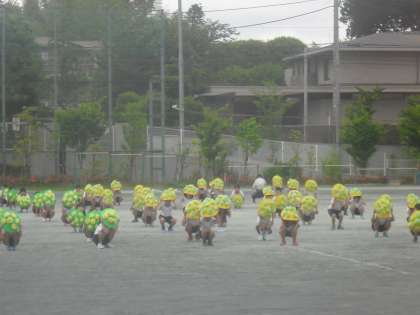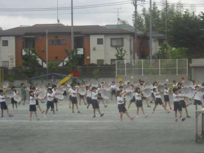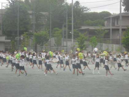 3年生の表現の練習です。自分たちの使う花笠の花が校庭できれいに咲きました。