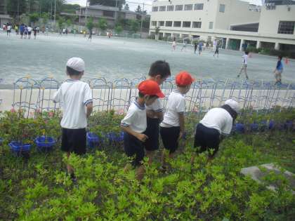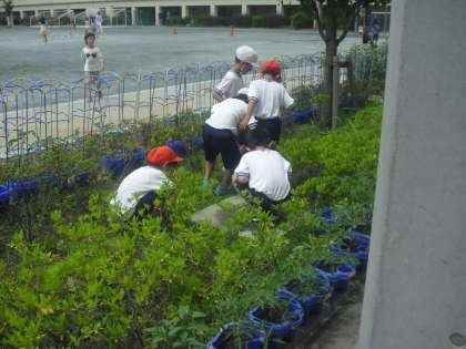 「バッタがいる〜」と子供たちが草むらをかき分け一生懸命追いかけていました。自然の中での発見!!、子供たちにとっては日々素敵な冒険や体験がたくさんですね・・・。