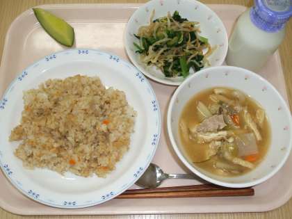 「ツナそぼろごはん」は、ツナの他に、みじん切りにしたたまねぎ、にんじん、たけのこを入れた“そぼろ”を混ぜたごはんです。少ししょうがが効いていて、暑いときにもピッタリの一品でした。