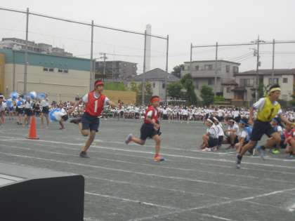 終盤は5.6年選抜リレー・・今までのバトンパスの練習を生かし呼吸を合わせてチームでの戦いです。応援する周囲もハラハラドキドキが最後まで続きました。