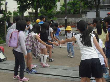水曜日の朝です。校門では4年生がお出迎え〜ハイタッチとともに、元気な挨拶の声掛けをしていました。