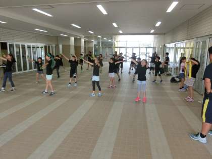 4年生が芦花小を代表して、下町まつりに出演です。ピロティに集合し、まずはリハーサルを。一週間前の運動会、そして昨日の集会と場数を踏んできた春駒だけに、すっかり板に付いた感じです。
