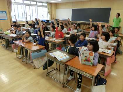 さて、オリジナルの歌詞を替え歌にして、歌い出した2年生。身体でリズムを取りながら、笑顔で歌う子がいっぱい!! 軽快そのものです。