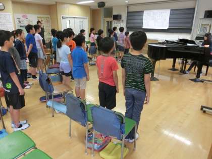 5年生も音楽の時間です。木曜日の音楽朝会で歌う『にじ』の練習から授業がスタート。朝一番、徐々にアイドリングしていきます。