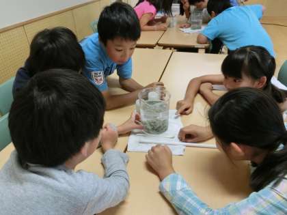 ビーカーに入っていた濁り水があれあれ不思議、こんなにきれいに大変身! 子どもたちから歓声が湧き起こっています。目をまん丸にしている子がいましたよ。水をきれいにしていく濾過の仕組みを目の当たりにし、思いがけない驚きや大発見があったに違いありません。