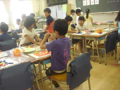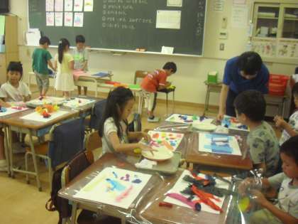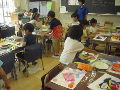 お花紙をちぎって丸めて、のりで貼ると・・・・おいしそうなキャンディーに、強そうな恐竜〜・・・自分の楽しい世界ができました。作品を見せながらお話してくれました。みんな上手にできましたね。