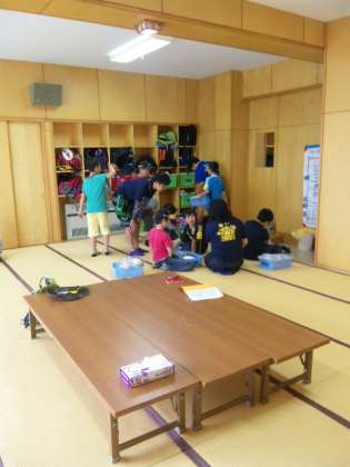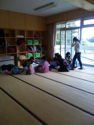 湖畔散策、園庭での遊びを終え、入浴準備開始です。親元を離れ、自分のことを自分で行う・・繰り返し練習しながら自分でできることが増えていきますね。