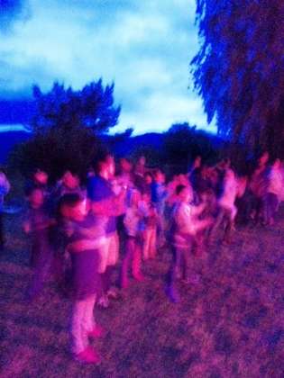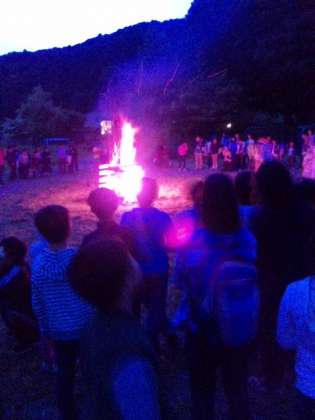 キャンプファイヤーが始まりました。歌に踊りに盛り上がっています。