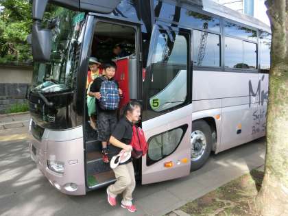 ひかり学級のお友達が河口湖から戻ってきました。午後の暑い東京、バスから降りたとたん、ムッとするような熱気が子どもたちを包みましたが、みんなバテたり、ダラダラしたりすることなく、しっかりと荷物を背負い、芦花小へ無事に到着しました。