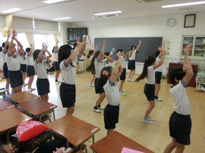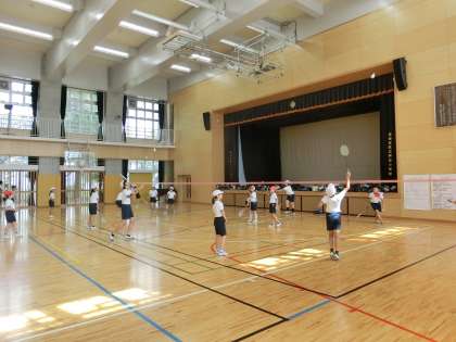 プールに入った学年もある暑い月曜日、額に汗をにじませながら、ソフトバレーボールやバドミントンに夢中になっている子どもたちでした。また、ダンサーのみんなはカメラマンの登場に一瞬「わっ!!」というリアクションを見せつつも、いざ曲が流れれば、そんなことはどこ吹く風。臆することなく、はつらつと踊っていましたよ。
