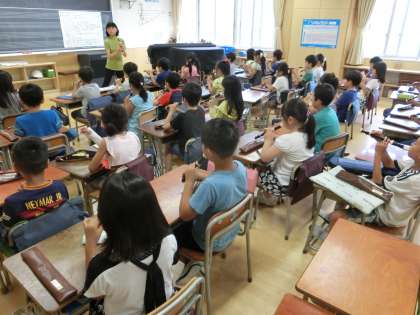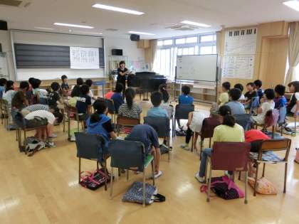 むし暑い雨空の朝ですが、音楽の授業会場には心地よい雰囲気が漂っていました。