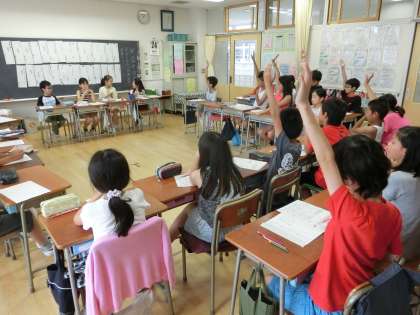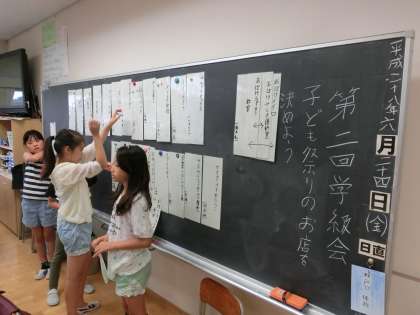 楽しみにしている子どもまつりへ向けて、お店決めの学級会に臨んでいる5年生です。今までの経験や創意工夫ある発想から多くのお店案が出されました。それについて賛成や反対の意見も発表し合い、聞き合っています。とても感心したのは、自主的に挙手して思いを発信している子が非常に多いことでした。それは友達の発表を受け入れていく学級の雰囲気がなければ、実現しないことです。
