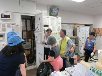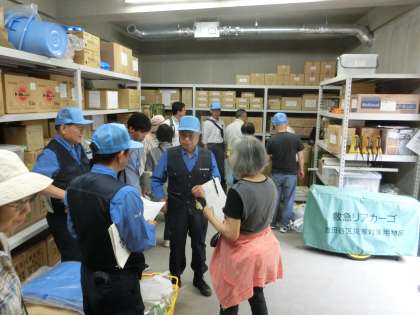 災害による緊急時に備えて、避難所運営委員(地域、PTA)の皆様のご協力をいただきながら、訓練が実施されています。まずは、普段目にすることのない防災倉庫の内部や受水槽を紹介します。芦花小・中の敷地内ですが、どこにあるのかわかりますか? 万が一の際、人々を守ってくれる大活躍の物品や水です。