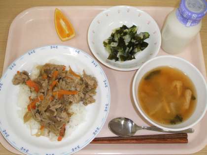 本日のメイン「豚丼」は、たっぷり使った豚肉のうま味と、たまねぎの甘味がきいていて、“つゆだく”が美味しかったです。豚肉は、夏バテ防止にも効果があるので、ぜひ家庭でも「豚丼」を作ってみてください。