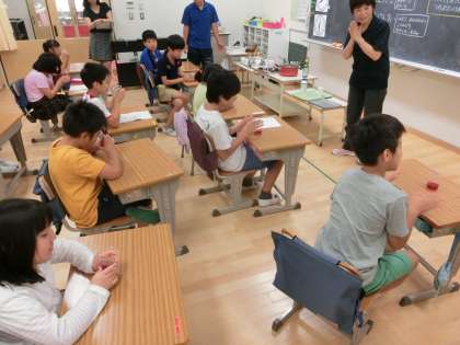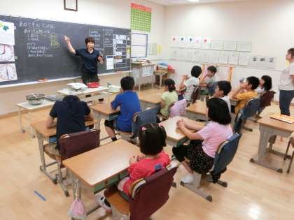 最後には思いがけないサプライズ! 特製赤シソジュースの試飲会となりました。おっかなびっくり口をつけた子どもたちからの感想は「苦い!」「すっぱい!」「おいしい!!」と様々。先生から「身体にいいですよ。」と教わるとニッコリ、嬉しそうでしたよ。