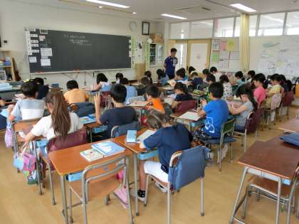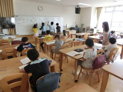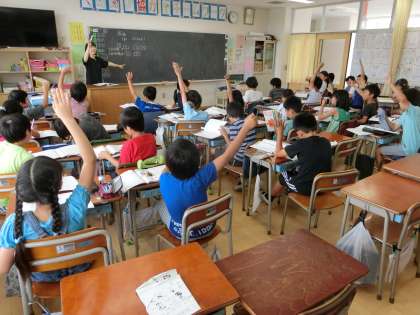夏休み目前、どの学年もまとめの時期を迎え、4年生の子どもたちも、2つのクラスが3カ所の教室に分かれて、1学期の内容をおさらいしています。自力で導き出した解答を全体の場で発表したくて、「やりたい! 言いたい!」と、挙手する子がたくさんいました。復習を確実に行っていくことは重要、とても意味のあることです。