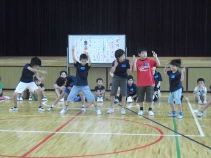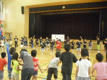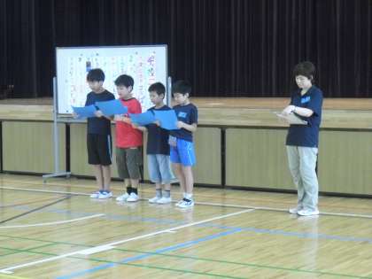 今日は芦花小学校で、祖師谷小ぽぷら学級、明正小ひまわり学級、烏山小つくし学級、芦花小ひかり学級の4校交流会を開きました。芦花小の子どもたちが司会進行をつとめました。芦花小の出し物は歌「幸せなら手をたたこう」です。歌に合わせそれぞれの動きを変えみんなで楽しみました。