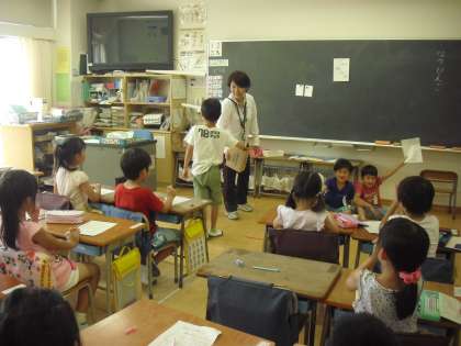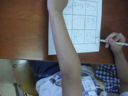 1年生の教室で夏を表す言葉を使ってのビンゴゲームを行いました。夏といえば・・・みんないろいろな言葉を見つけて並べていました。うまく揃った人から「ピンゴ〜」の掛け声が・・響いていました〜