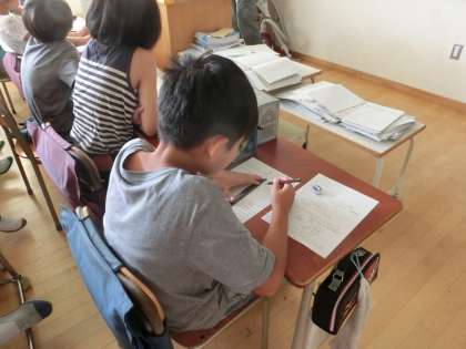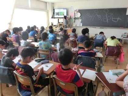 稲作について学習している5年生の教室に、頼もしいお助けマンが登場です! 映像資料を活用しながら、米作りを行っていく上での様々な工夫等、農業のプロが語るお話は現実味が断然違います。教科書の説明を読むだけの活動に比べ、はるかに子どもたちの心に響きます。今日の学習はいつも以上に充実しましたね。