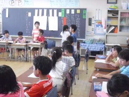 みんなのことをもっと知って、もっと仲良くなるために・・という提案理由に沿って1学期のお楽しみ会の内容を決める話合いです。めあてや提案理由に沿って自分の意見を発表したり、民あの意見がいかせるようにと、より良い解決方法を受け入れたり、考えて発表していました。司会グループのみんなも上手に話合いをすすめていましたね。