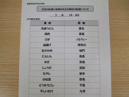 旬を迎えた「とうもろこし」。1年生が1・2時間目に皮むきをしました。今日は千葉県産のもので、農薬を極力使わない特別栽培のとうもろこしでした。とっても甘味があり、美味しかったですね。